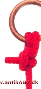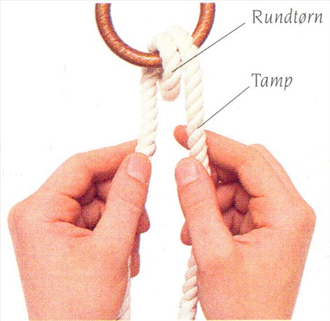 (1) Før tampen nedefra og op gennem en ring, Før tampen gennem ringen endnu en gang, så der dannes en rundtørn.