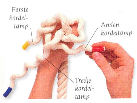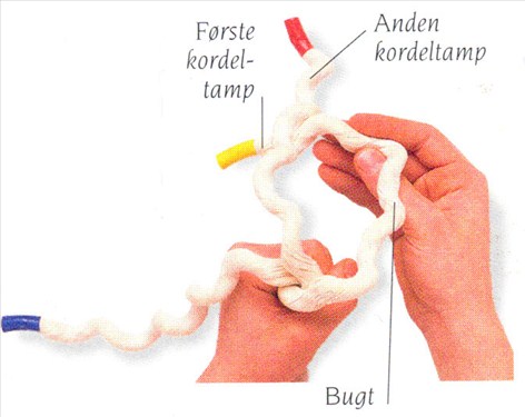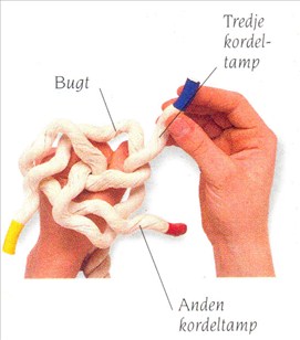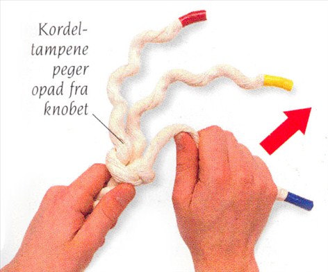 Tampene takles, før knobet bruges som stopperknob Ved binding af alm. stopperknob skal hver kordeltamp føres omkring og under den følgende kordeltamp