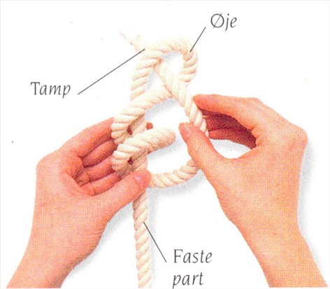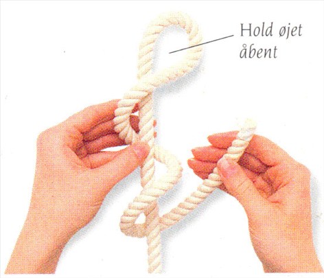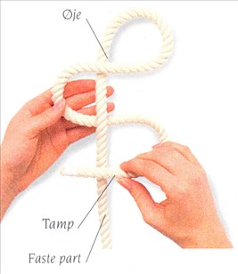 (1) Lav et øje ved at føre en lang tamp over den faste part. Før tampen under og derpå over den faste part under øjet.