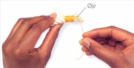 (3) Stik garnet ind i øjet og træk det igennem.