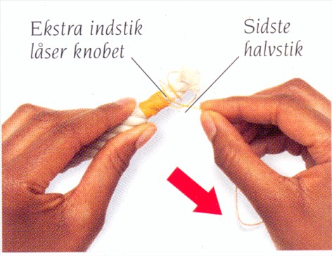 (4) Stik garnet en ekstra gang under det sidste halvstik. Stram til, og afkap enderne til korte garntampe.