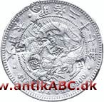 Japansk 1 yen i sølv fra år 27 (1894) forsynet med 10 kinesiske chopmarks.