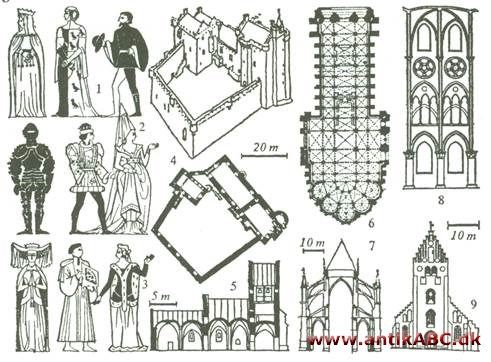 Gotikken har fået sit navn i den middelalderenfjendtlige italienske renæssance. Det skulle udtrykke den foragt, man nærede over for de barbariske goter, der havde hærget Italien og efterladt sig et dårligt ry. Stilen er opstået i middelalderens Frankrig og har intet med goterne at gøre. Den afløste med sine spidsbuer - derfor også kaldt spidsbuestilen - krydshvælvinger og stræbepiller den strenge og mere kompakte romanske stil. Virkelig ære og værdighed nåede gotikken først i 1700-tallets slutning, hver den litterært-romantiske Sturm-und-Drang-bevægelse tog den til sig. Gotikken havde megen sans for farver og stoffer, bl.a. i form af store vægtæpper, hvormed man smykkede, tjeldede, de ellers nøgne vægge i husene og gav rummene en smuk ramme, samtidig med, at de udgjorde en fornem baggrund for de brogede, men alligevel enkelt raffinerede klædedragter. At levealderen i det store og hele kun var en generatien - 30 år - ses alene deraf, at såvel møbler som dragter var lavet til unge og slanke mennesker.