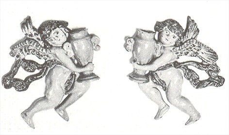 Et par hængevaser i form af amoriner med krukker. Kellinghusen 1785-1800 (ABR).