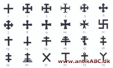 Kors på mønter er det hyppigst forekommende symbol, og korsformen går meget langt tilbage i tiden.