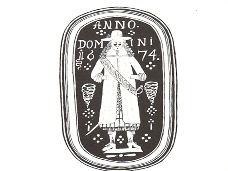 Parykæske. tysk, fra 1674. Udsmykket med modekavaler.