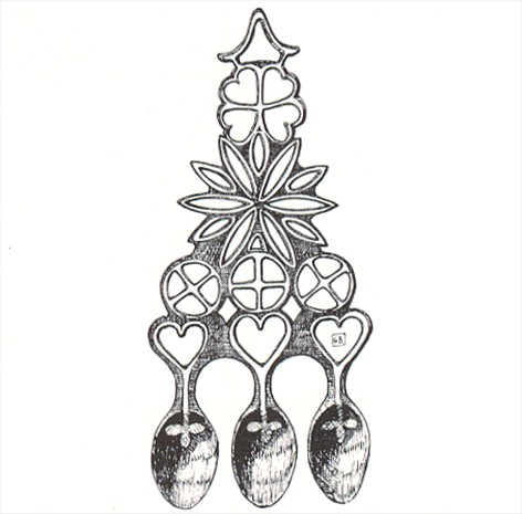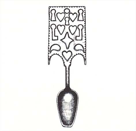 Walisisk kærlighedsske med tre laffe og gennembrudte dekorationer. 1700-tallet.