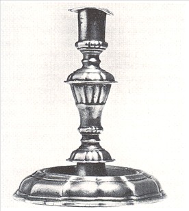 Tinterrin, skævknækket, mestermærker C. W. Holsten medio 1700-tallet